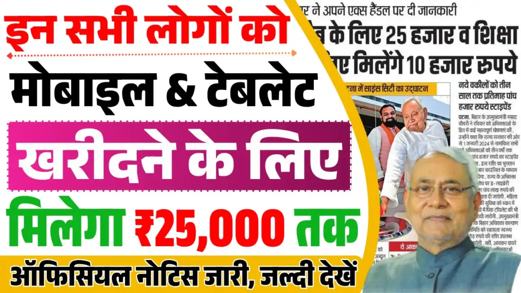 Bihar Smartphone And Tablet Yojana 2025 : इन सभी को मिलेगा ₹25,000 Tablet के लिए और ₹10,000 मोबाइल के लिए
