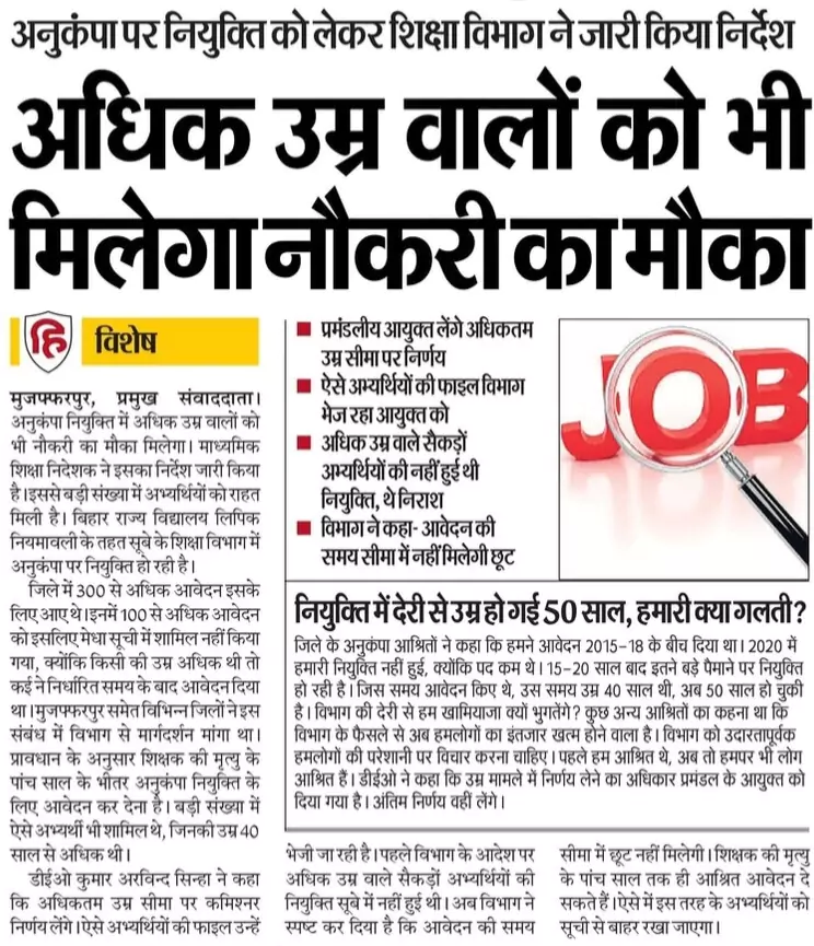 Bihar Shiksha Vibhag Compassionate Appointment 2025: Anukampa Niyukti में Over Age Candidates को भी मिलेगा मौका, जानें नया निर्देश