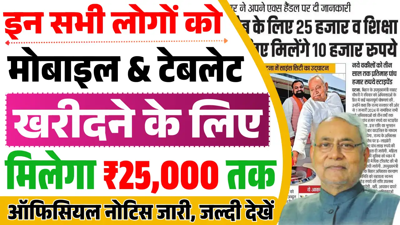 Bihar Smartphone And Tablet Yojana 2025 : इन सभी को मिलेगा ₹25,000 Tablet के लिए और ₹10,000 मोबाइल के लिए